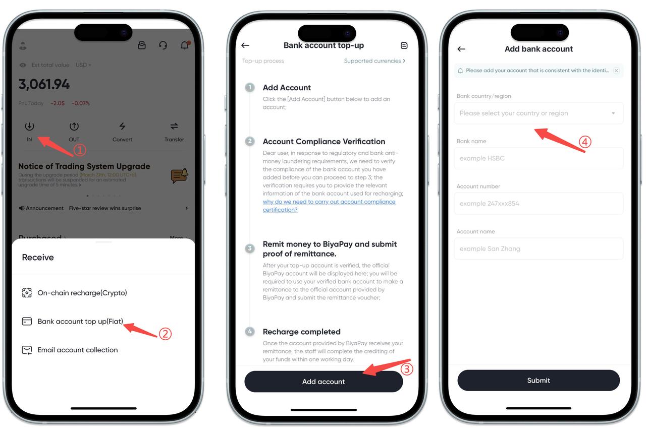 The payee bank account refers to the bank account bound when the user withdraws fiat currency from BiyaPay to the bank account. When the user performs the withdrawal operation in BiyaPay, the bank account filled in is the payee bank account, which will receive the fiat currency withdrawn from BiyaPay.