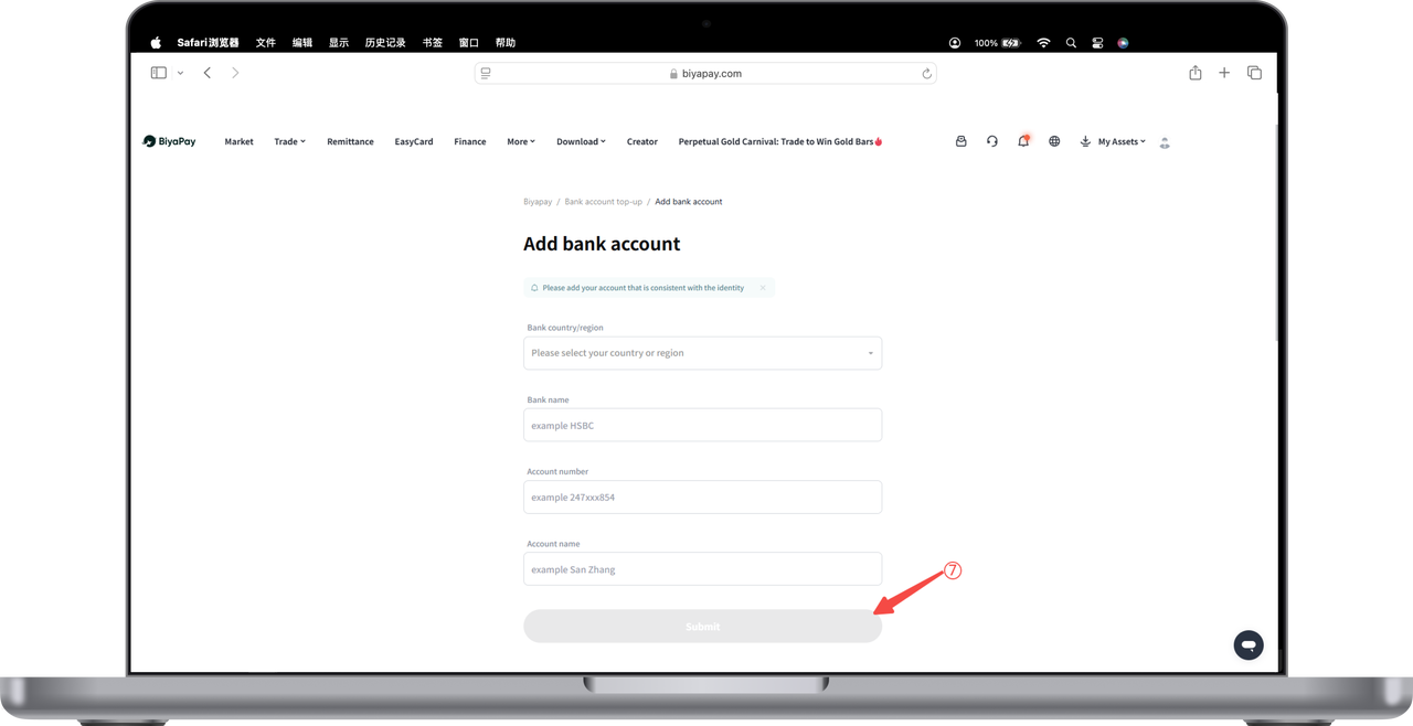 Select [Remit to yourself], please fill in the bank account information and personal information as required, and then click submit