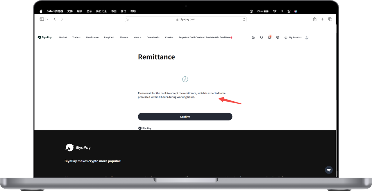 After you submit the remittance, please wait for the bank to accept it. After 9 am Singapore working time, it is expected to accept the remittance within 8 hours
