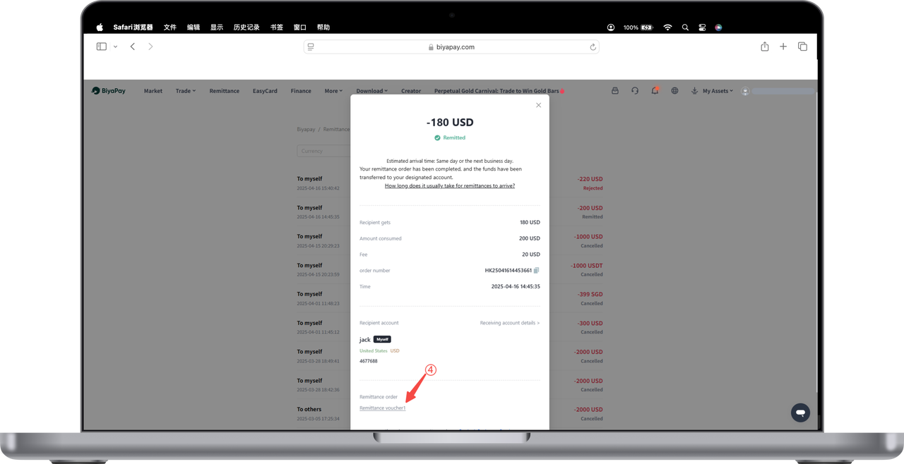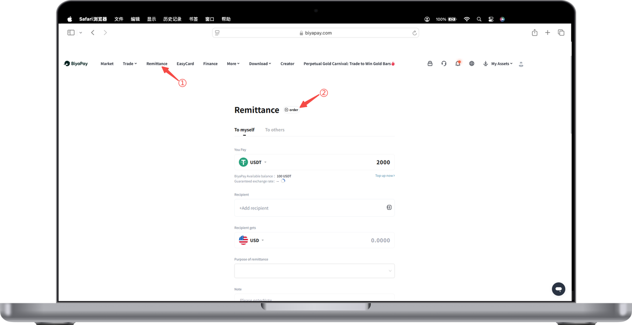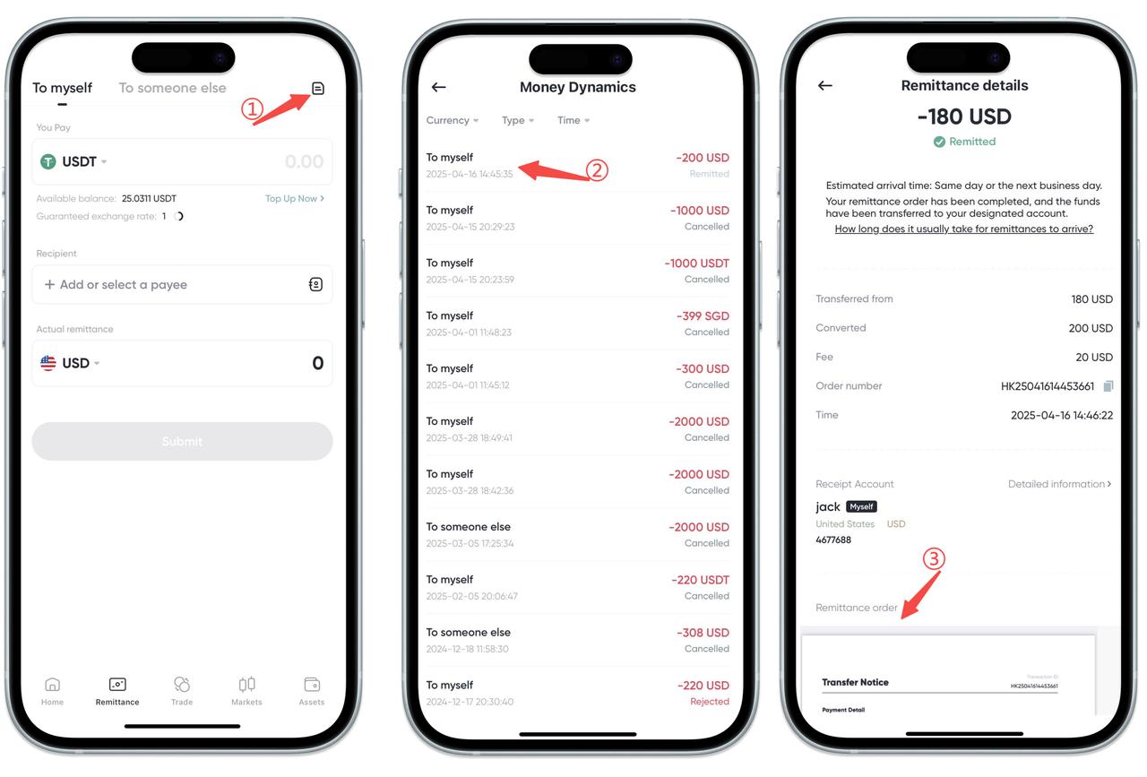 1. Click [Order] in the upper left corner of the [Remittance] page to view your historical remittance records,
