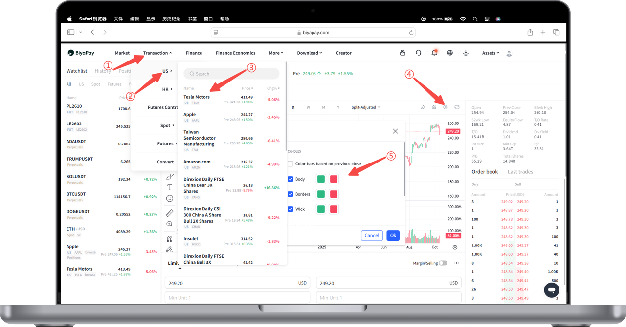 Open the official website, click [Trade] - [US Stocks] in the upper left corner, select any stock, and click the settings icon in the upper right corner of the trading page to set the color of rise and fall