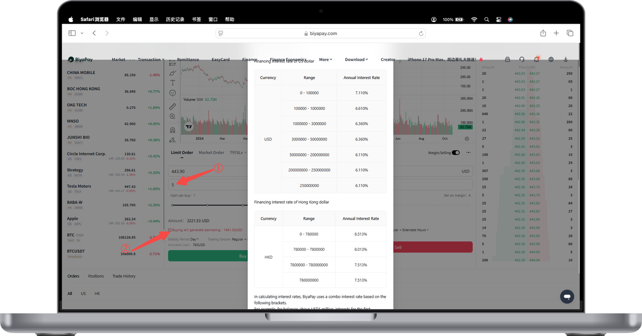 4. The system will pop up the current margin rate table, and you can view the annual interest rate according to your margin amount.
