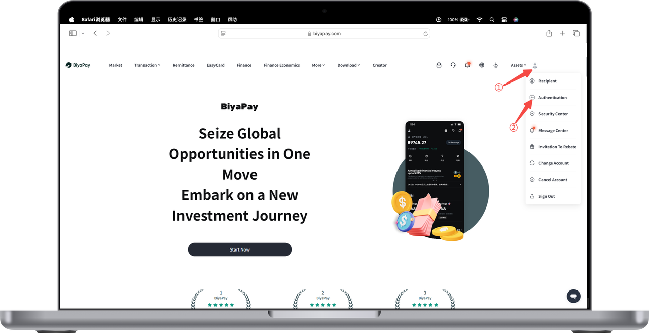Click the avatar icon in the top right corner of the webpage, select [Identity Verification] to complete identity verification