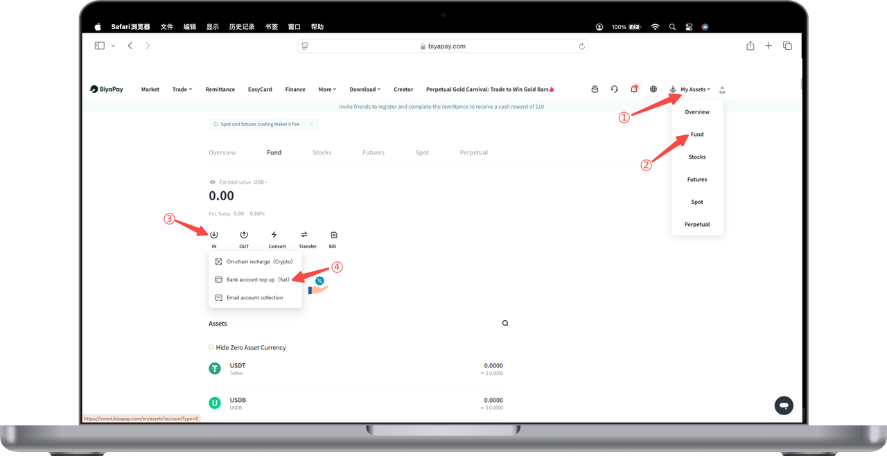 After submitting the deposit application, please log in to BiyaPay app or official website, and communicate with online customer service about the review matters between Monday to Friday 10:00 to 20:00.
