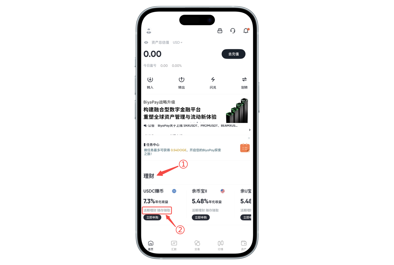 在 BiyaPay App 中,不同理财产品会标注对应的理财期限或申购方式(如活期、随存随取等)。你可以在首页理财模块中快速查看相关信息。