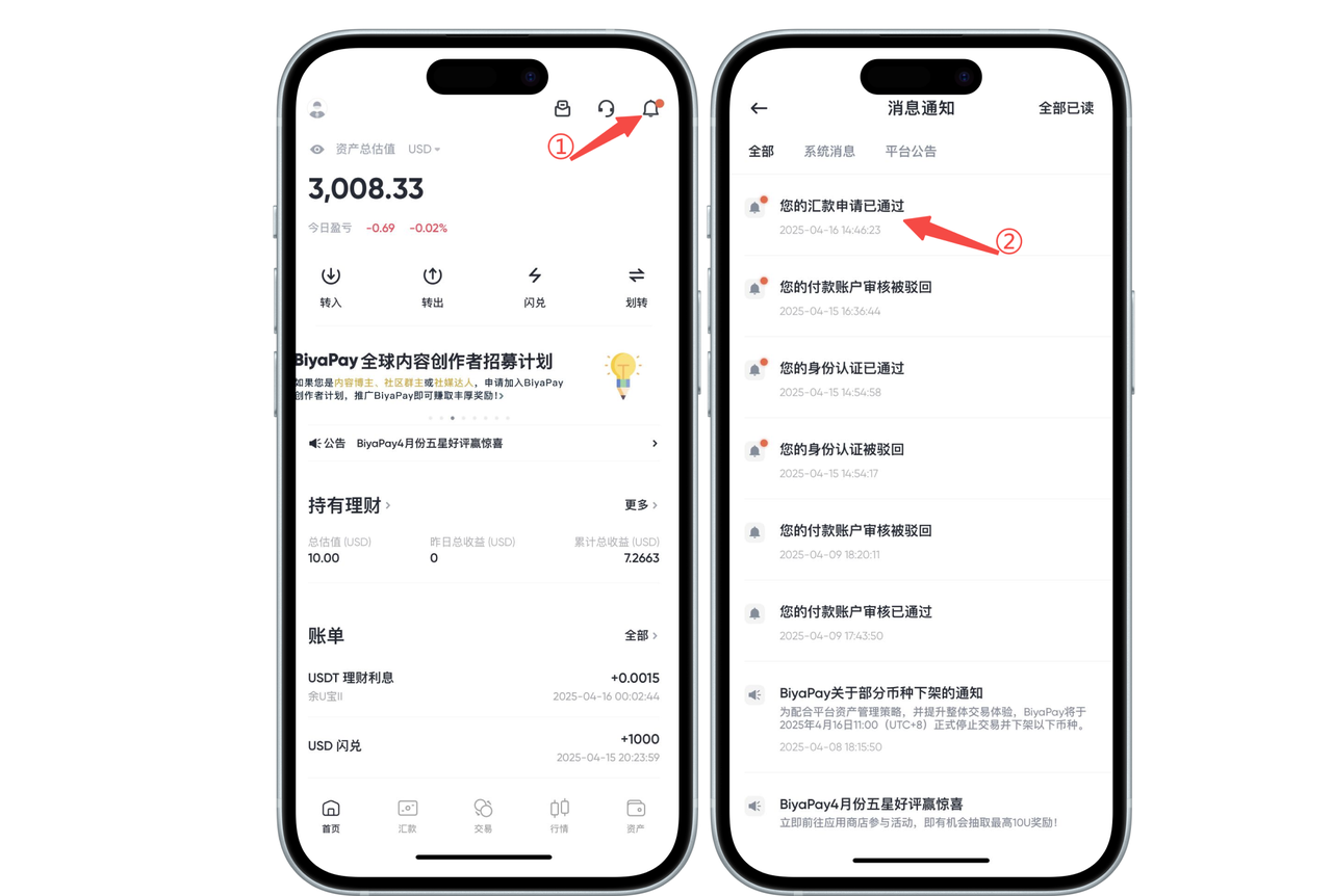 如何在 App 端查看汇出通知: