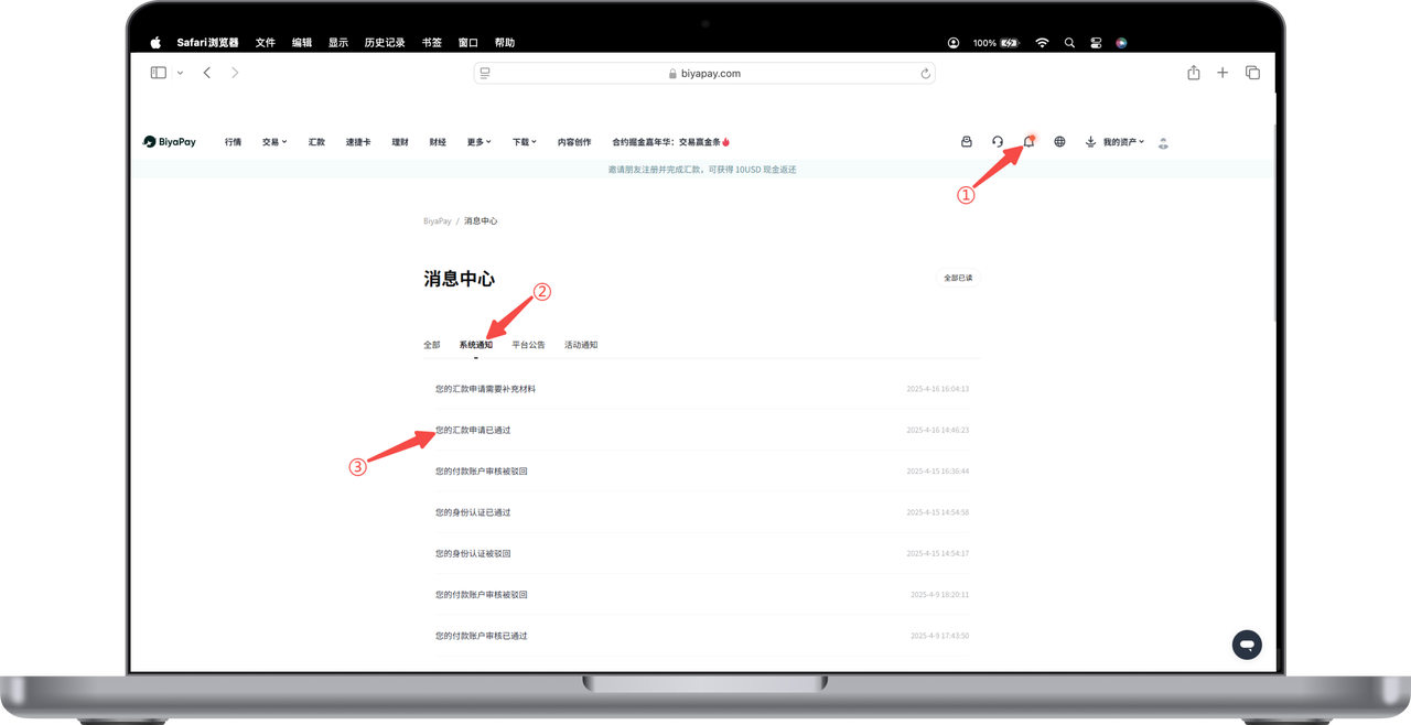 如何在 Web 端查看汇出通知: