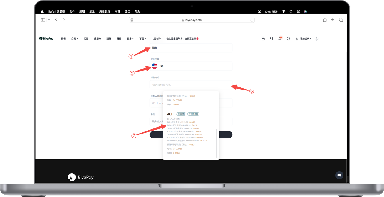 2.选择国家、币种、付款方式以后,可以查看到所选币种的单笔提现金额的范围。