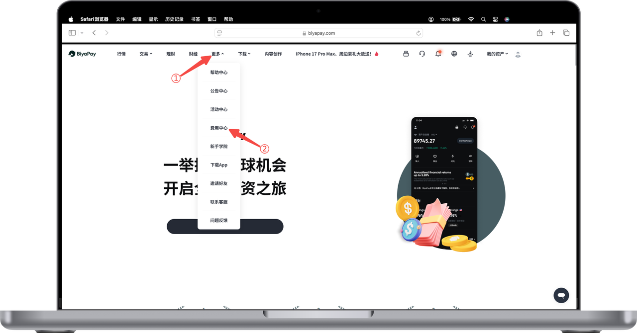 1.点击网页上方的【更多】-【费用中心】