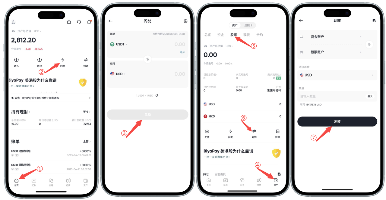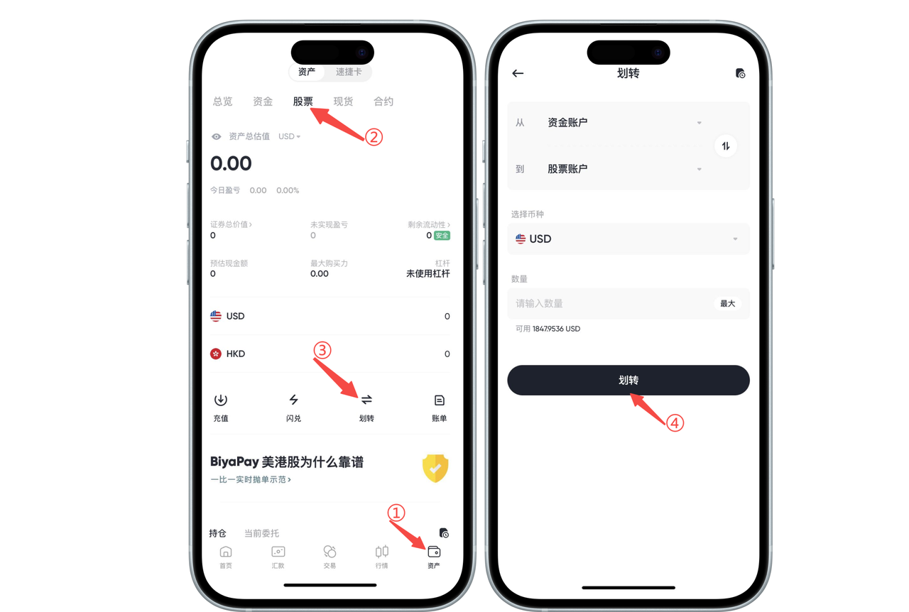 如何把充值到BiyaPay的法币和数字货币,划转到BiyaPay美港股股票账户?