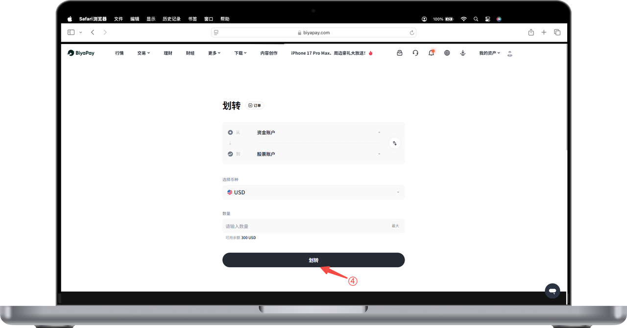 如何在 Web 端查看股票入金流程: 如何把充值到BiyaPay的法币和数字货币,划转到BiyaPay美港股股票账户?