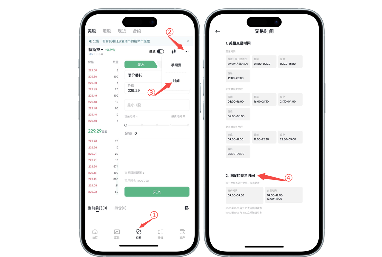 如何在 App 端查看港股交易时间: