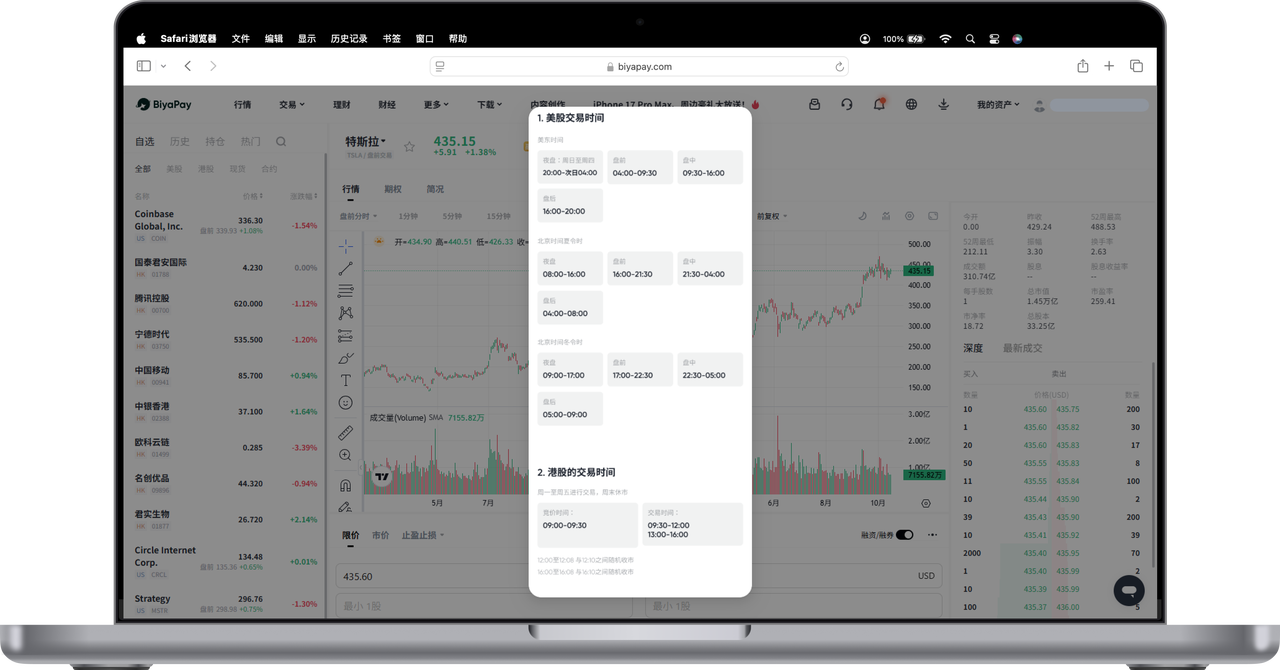 如何在 Web 端查看港股交易时间: