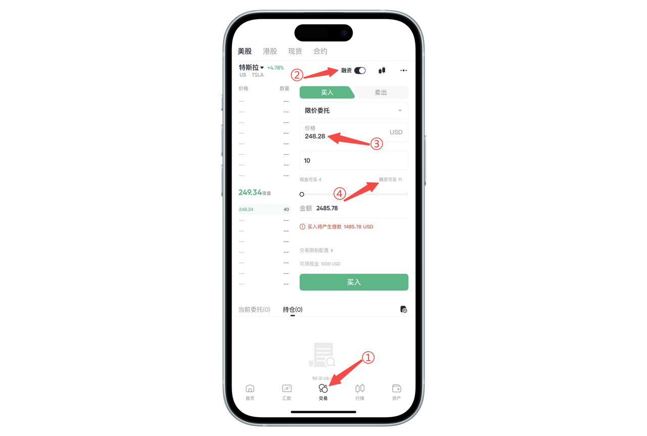 如何在 App 端查看融资融券交易最多可以借入多少资金或股票: