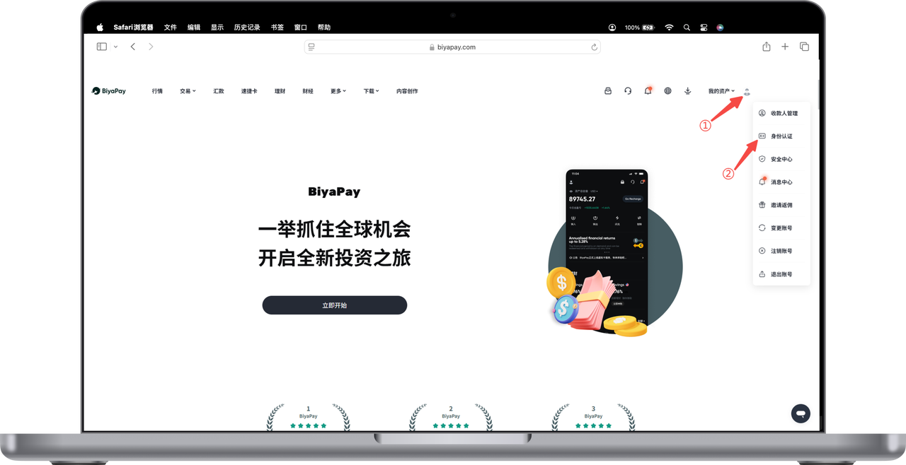 1.点击网页右上角头像图标,选择【身份认证】进行实名认证